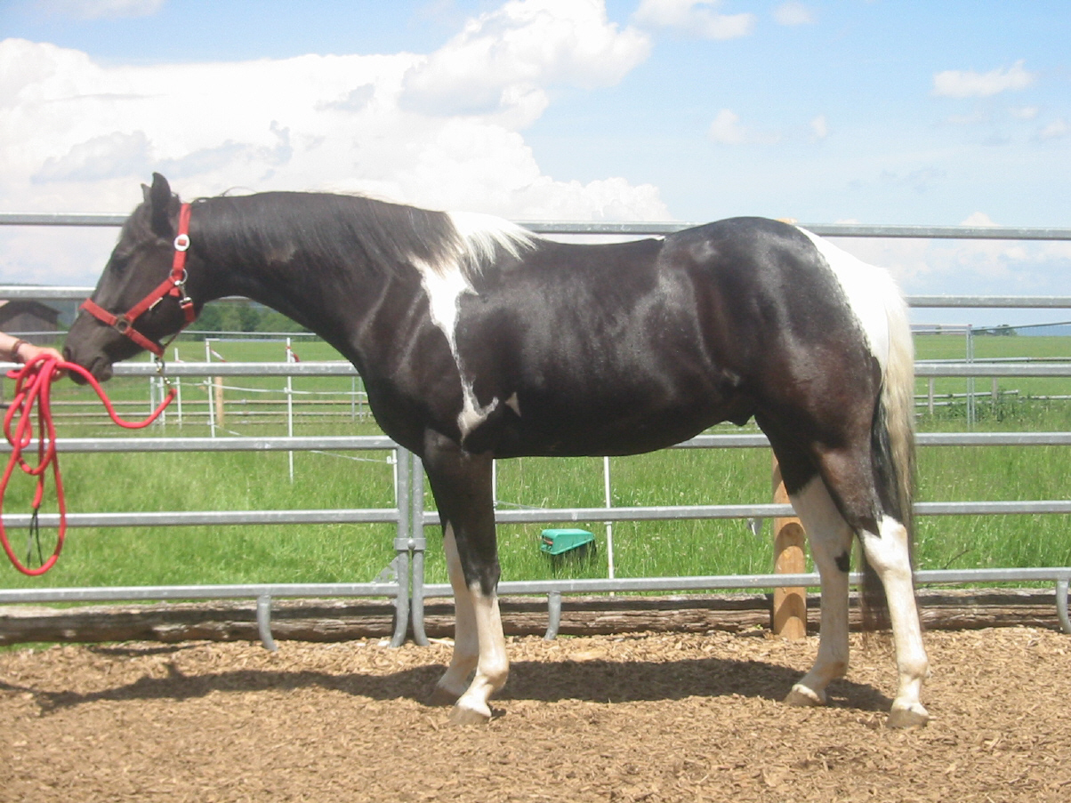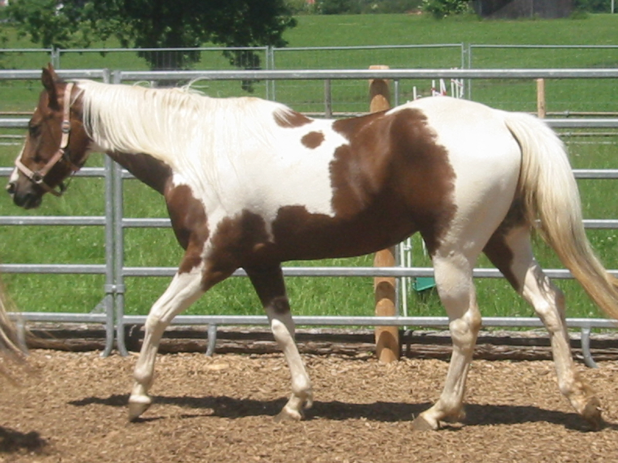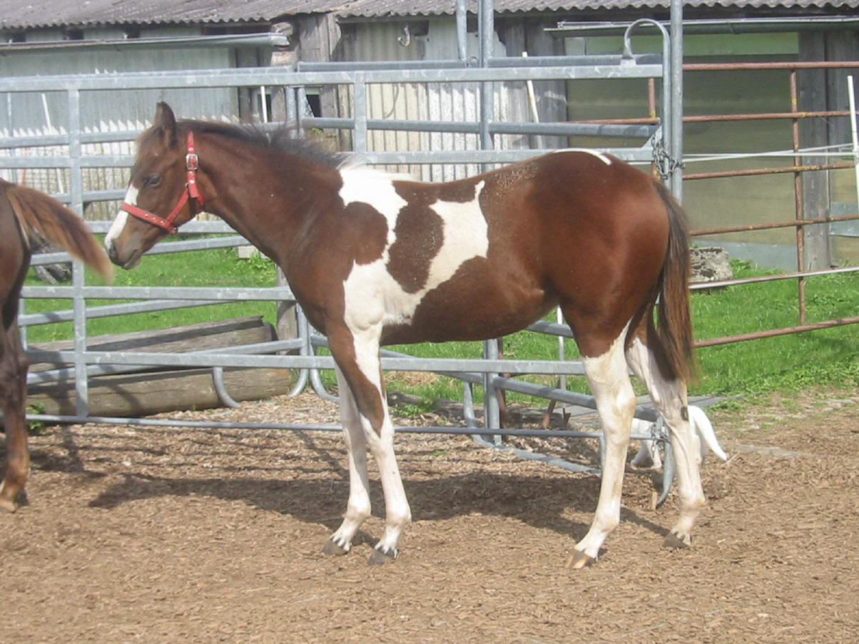 Sorrel-Tobiano Paintstute, M.: Paint-Prämienstute "Tilly`s Easy Rose", V.: "Fair Bars". Leider ist die Stute noch nicht geritten. Zwar war sie beim Trainer, der aber mit ihr nicht klar kam. Aus diesem Gund möchten wir sie nur an erfahrene Pferdeleute abgeben. Im Gegenzug sind wir bereit, "Tilly´s Easy Amber" günstig bzw. zum Fohlenpreis abzugeben. Vielleicht möchte ein Züchter auch mit einer seiner eigenen Stuten tauschen, evtl. auch mit einem Hengst.